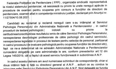 Federatia Politistilor de Penitenciare va solicita sa sesizati organul de urmarire penala competent, din raza teritoriala a Administratiei Nationale a Penitenciarelor