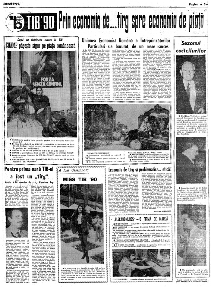 Consider că Târgul Internaţional de la Bucureşti – ediţia 1990 constituie unul din evenimentele fericite ale acestui an – şi acest lucru, din mai multe puncte de vedere.