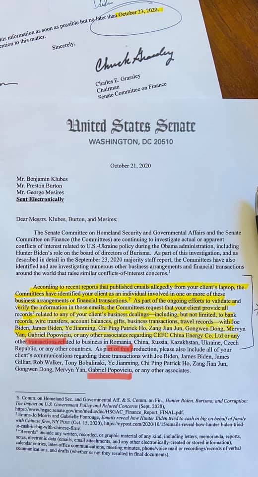 În mod oficial, Gabriel Popovociu și legăturile cu România ale lui Biden sunt în ancheta Senatului SUA în scandalul privind laptopul lui Hunter Biden/ Bebelușelor, dans!