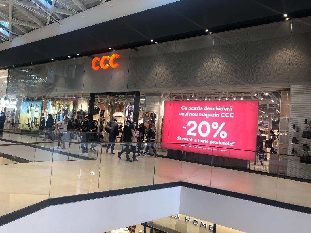 În noul magazin deschis la Brașov, CCC le oferă clienților, până pe 1 noiembrie, 20% discount la toate produsele. Magazinul a fost deschis în conformitate cu reglementările sanitare și de siguranță impuse în acest context atât pentru angajați, cât și pentru clienți. Recomandările de bază sunt afișate în magazin și la casa de marcat și sunt luate în permanență măsuri pentru păstrarea unei distanțe de siguranță.