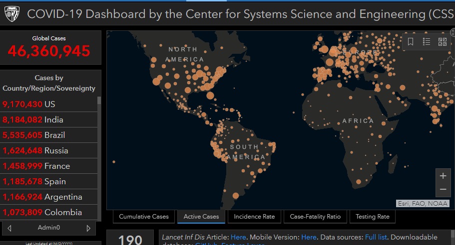 Bilanț global sumbru: Numărul cazurilor de COVID-19 în Europa s-a dublat într-o lună, depăşind pragul de 10 milioane de îmbolnăviri/ 46,3 milioane de cazuri confirmate în întreaga lume