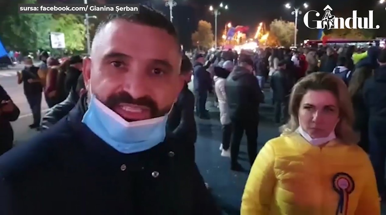 Protestatarii scandează și împotriva vaccinării. „Dragi guvernanți, d-aia suntem aici. Am ajuns să nu vă mai credem. Să vă fie rușine!”, exclamă bărbatul de la „tribună”.