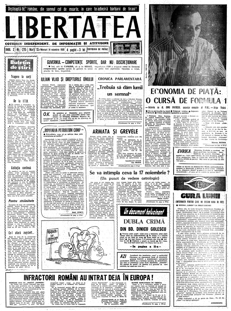Ziarul Libertatea din 13 noiembrie 1990 pag. 1-a ► Click pe imagine pentru mărire!