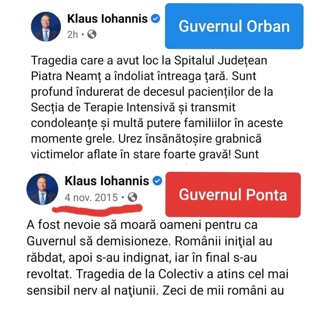 Cine este de vină că, în loc să fie vindecați, oamenii au ars de vii în spital? Cine trebuie să demisioneze de această dată? Două tragedii cumplite, în cele două mandate de președinte! Două guverne diferite, însă numai unul, Guvernul Ponta, a avut curajul și demnitatea să demisioneze. Aceasta este dubla măsură a președintelui României!