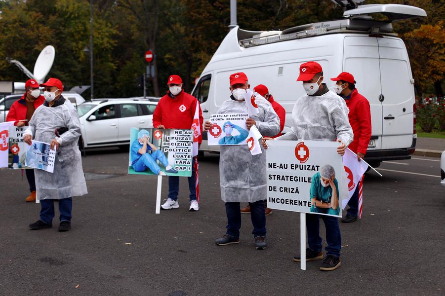 În urmă cu 2 săptămâni, cadrele medicale au pichetat Guvernul întrucât lucrătorii din domeniul sănătății sunt epuizați și nemulțumiți de „strategiile de criză incoerente, promisiunile neonorate, deciziile politice luate fără consultarea partenerilor sociali”.