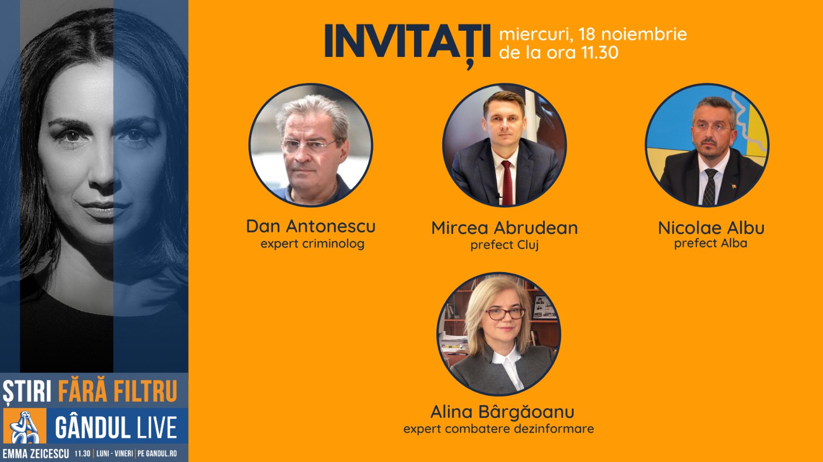Dan Antonescu, expert criminolog, se află printre invitații Emmei Zeicescu la ediția GÂNDUL LIVE de miercuri, 18 noiembrie 2020, de la ora 11.30