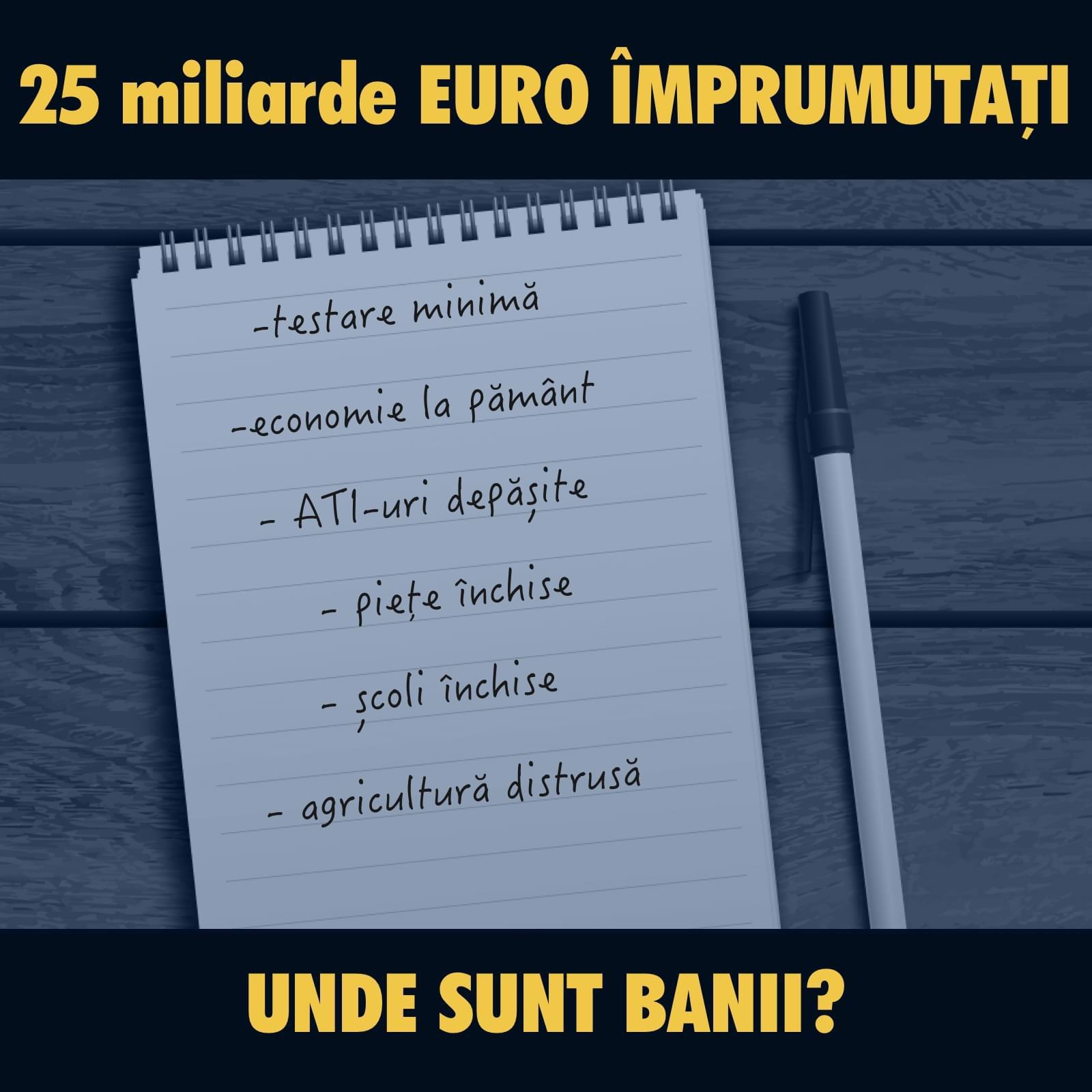 S-au împrumutat în numele Statului Român cu peste 25 de miliarde de euro, care însă nu se văd nici în sprijin pentru firmele românești, nici pentru agricultori, nici pentru a le face viața mai ușoară pensionarilor sau copiilor din familii nevoiașe!