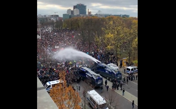 Poliția din Berlin a folosit tunuri de apă împotriva protestatarilor antiblocare care se manifestau în apropierea Porții Brandenburg împotriva noilor legi COVID-19 despre care susțin că sunt neconstituționale.