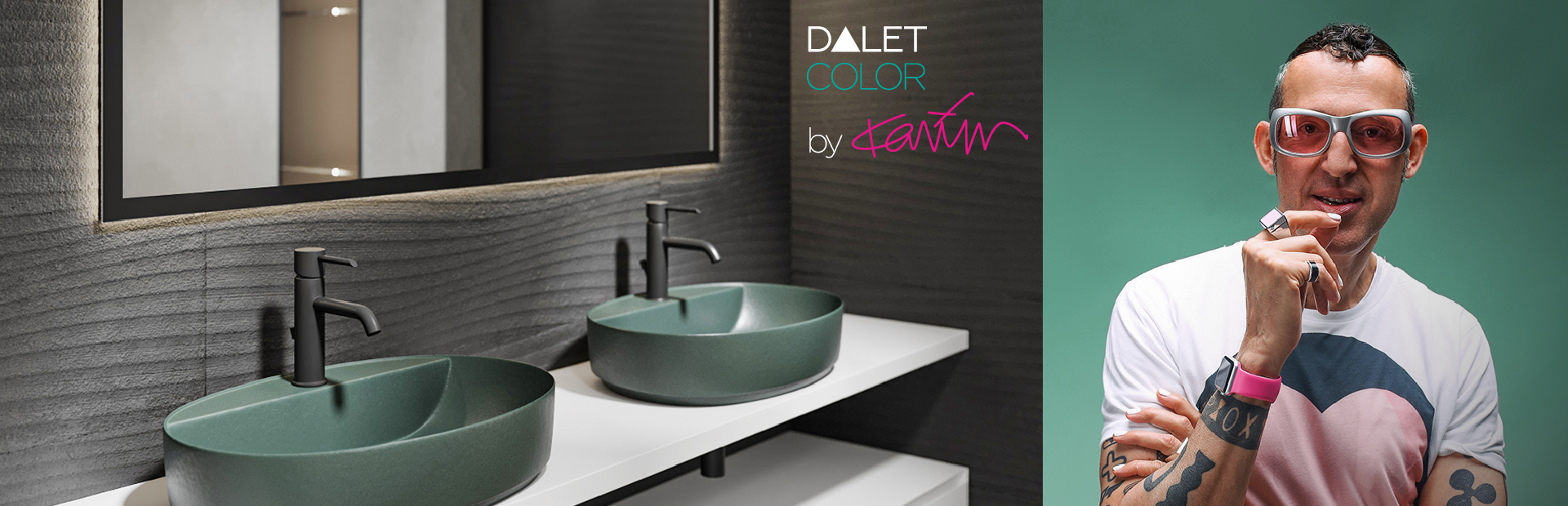 Artizan al culorii și al formelor fluide, Karim Rashid oferă un suflu vibrant colecției de obiecte sanitare DALET și semnează designul lavoarelor, alături de selecția a peste 15 tonuri de culoare pentru lavoare și căzi. Ocru intens, verde temperat, roz pudră fac parte dintre nuanțele sofisticate propuse de designer pentru portofoliul DALET Color. Noua colecție permite atât realizarea de ambiente minimaliste, cât şi utilizarea acestor obiecte sanitare în amenajarea băilor cu design clasic adus ușor în contemporan.