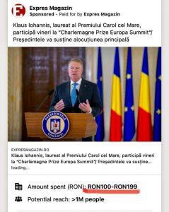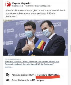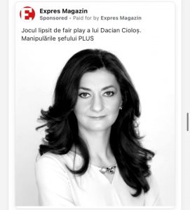 Acest mod de operare il gasim si la jurnalista Oana Stanciulescu! Campanii platite, pro-PNL si campanii de denigrare USR-PLUS fie in nume propriu, fie in numele defunctei reviste Expres Magazin, reanimata, pare-se, in campanii electorale ca aceasta! Ce mana un asa zis jurnalist independent sa finanteze campanii laudative pro-PNL si guvern, din buzunarul propriu si anti USR-PLUS? La aceasta intrebare trebuie sa va raspundeti singuri! Sumele cheltuite le gasiti mai jos! #Presa #Quality #Deontologie