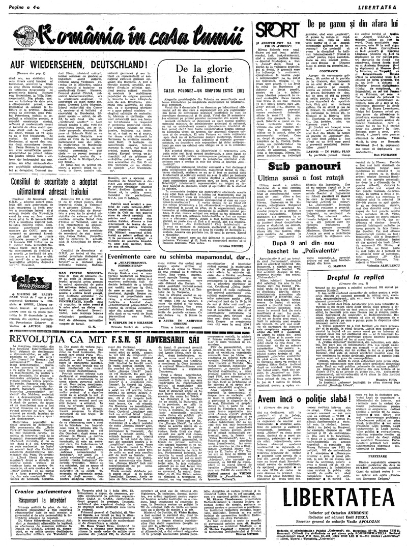 Ziarul Libertatea din 30 noiembrie 1990 pag. 1-a ► Click pe imagine pentru mărire