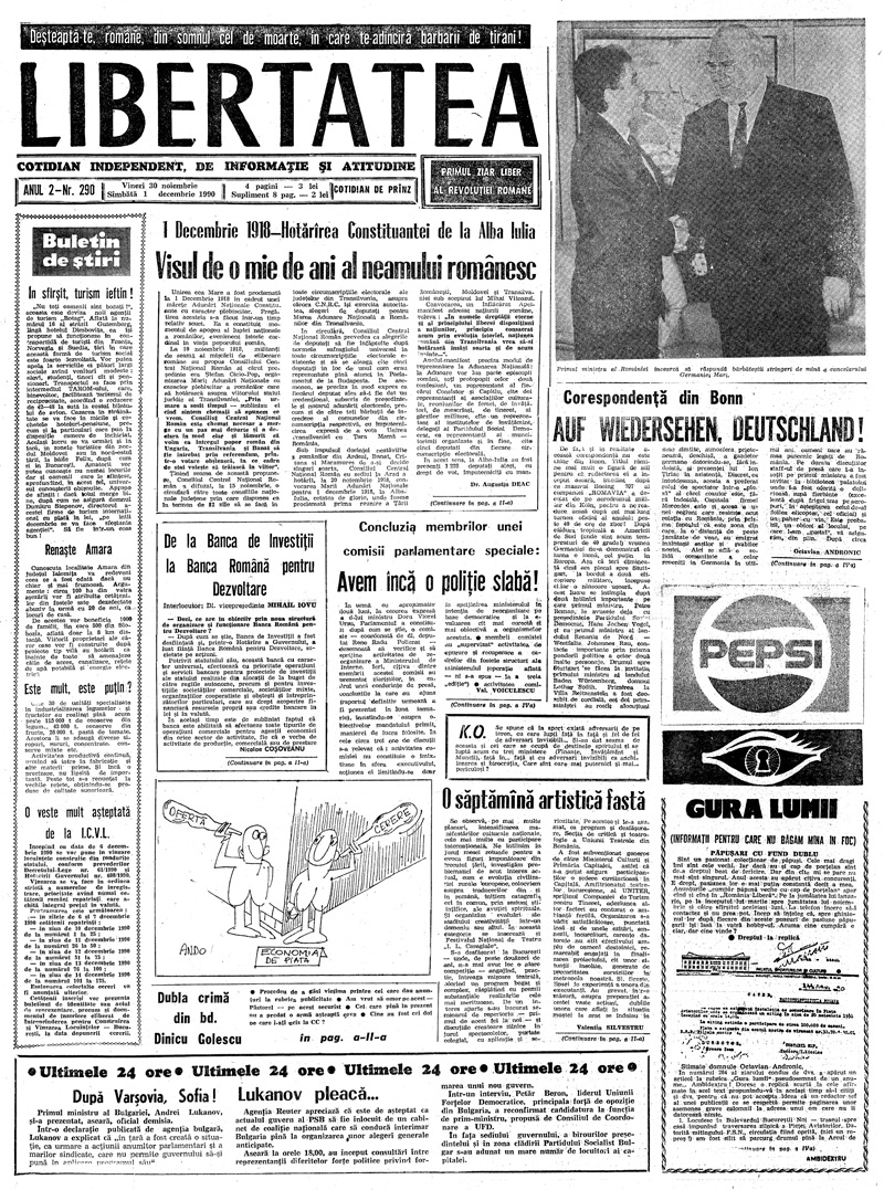 Ziarul Libertatea din 30 noiembrie 1990 pag. a 2-a ► Click pe imagine pentru mărire