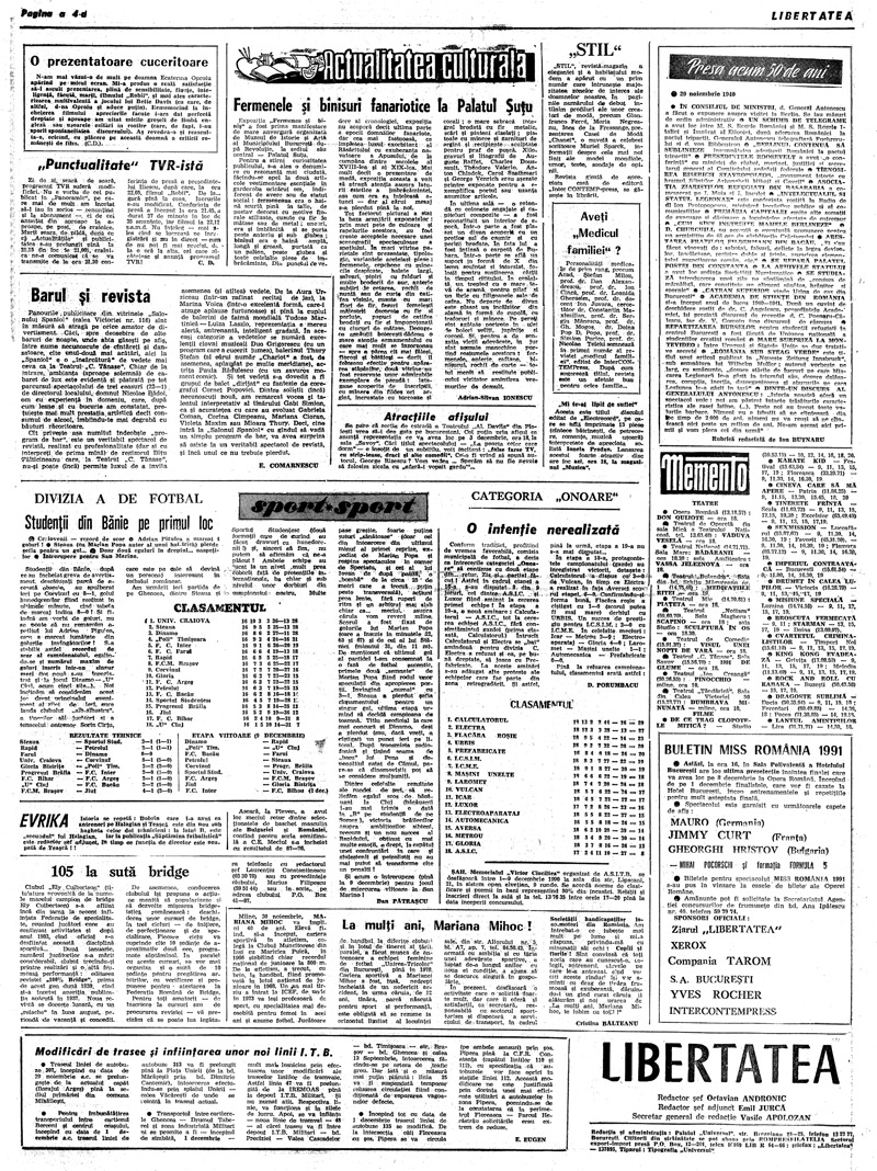 Ziarul Libertatea din 29 noiembrie 1990 pag. a 4-a ► Click pe imagine pentru mărire