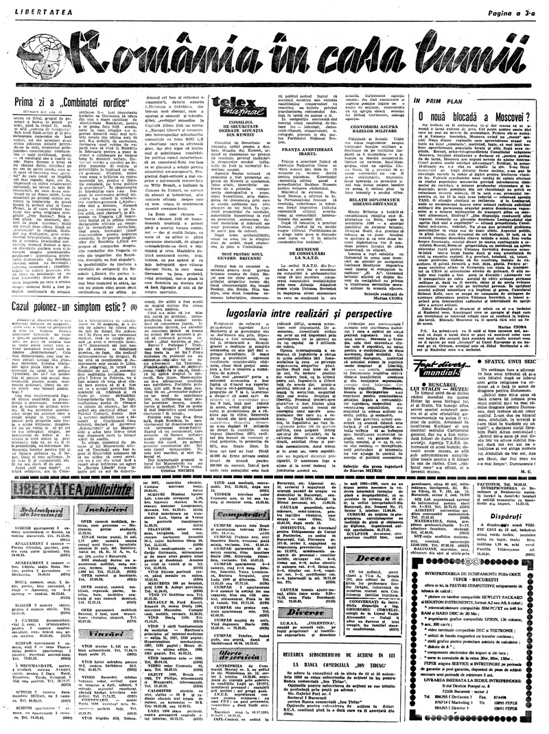 Ziarul Libertatea din 29 noiembrie 1990 pag. a 3-a ► Click pe imagine pentru mărire