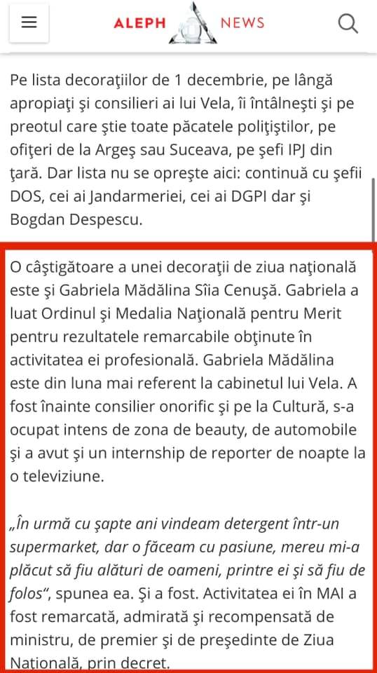 Oameni buni, printre zecile de decorati se regaseste si asistenta Ministrului Marcel Vela, domnisoara Gabriela Mădălina Sîia Cenușă! Aveti poza cu domnisoara mai jos si nu, NU ESTE CARMEN DAN!:))) Despre dansa, scrie AephNews, precizeaza jurnalistul Ionut Cristache: