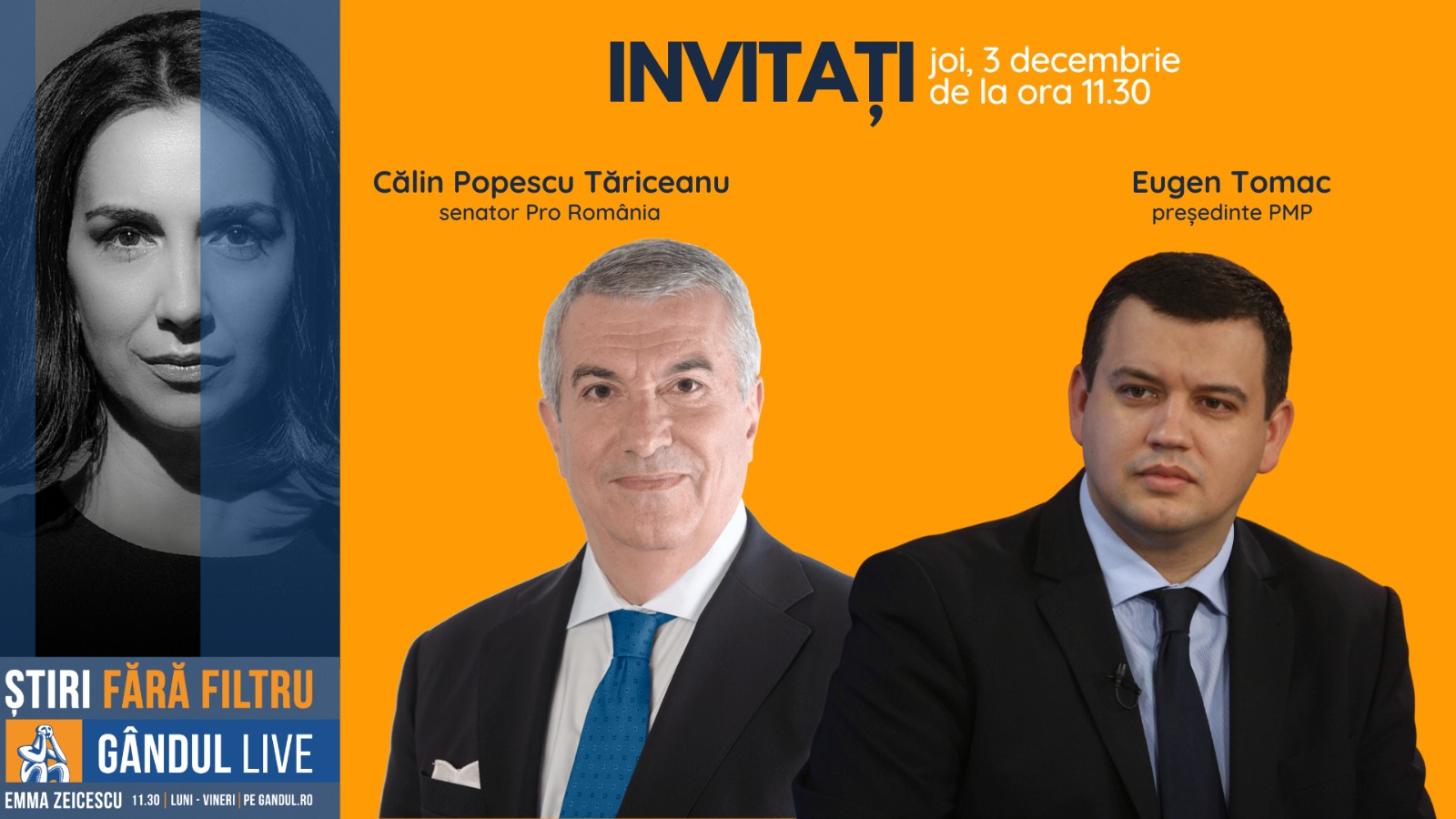 GÂNDUL LIVE. Călin Popescu Tăriceanu, senator Pro România (Social Liberal), se află printre invitații Emmei Zeicescu la ediția de joi, 3 decembrie 2020, de la ora 11.30
