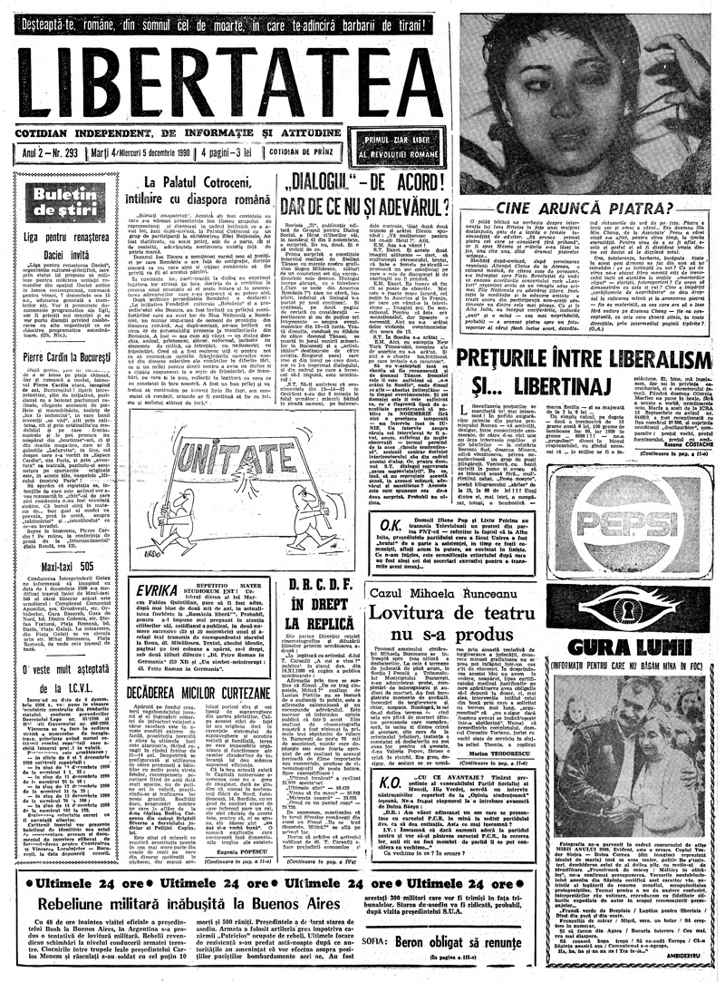 Ziarul Libertatea din 4 decembrie 1990 pag. a 3-a ► Click pe imagine pentru mărire