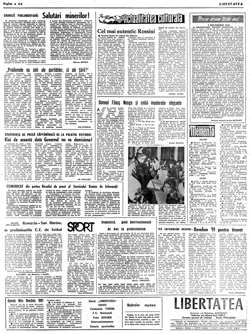 Ziarul Libertatea din 5 decembrie 1990 pag. a 4-a ► Click pe imagine pentru mărire