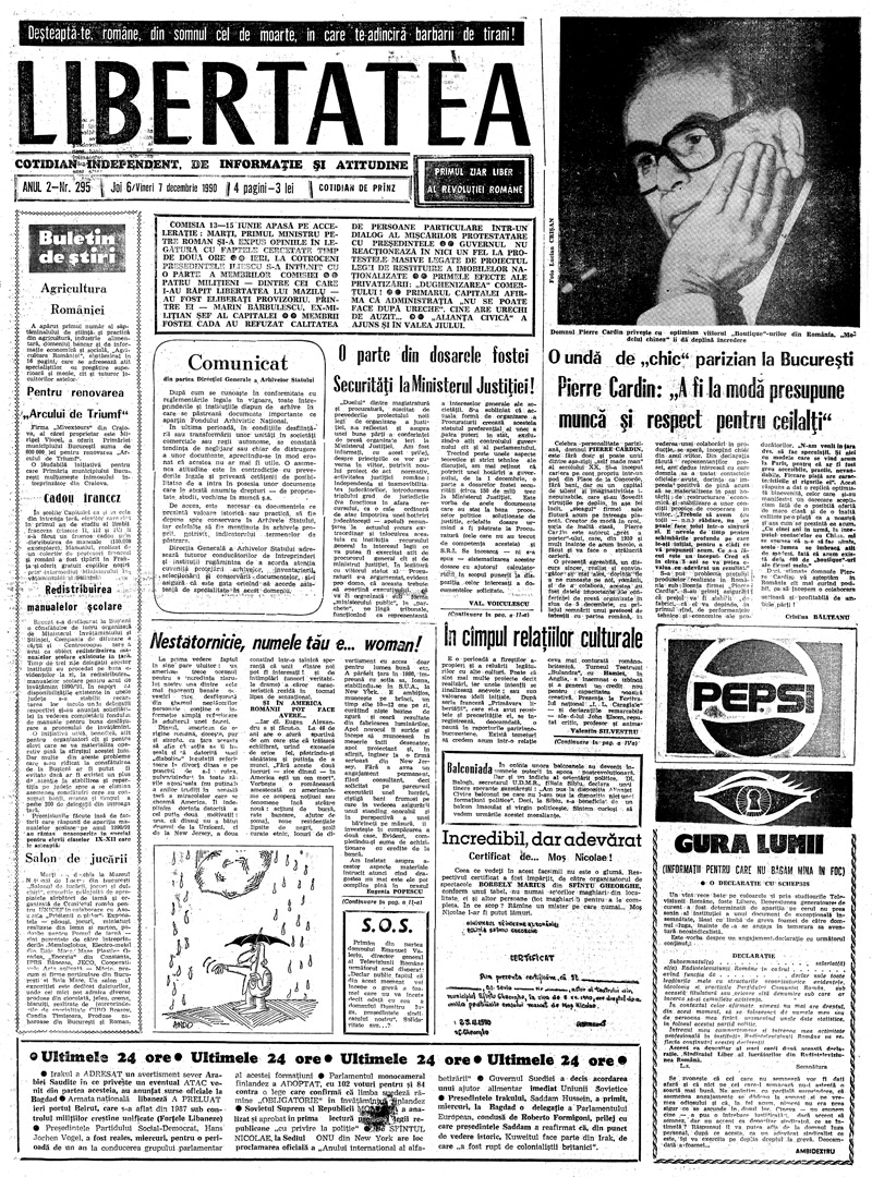 Ziarul Libertatea din 6 decembrie 1990 pag. 1-a ► Click pe imagine pentru mărire