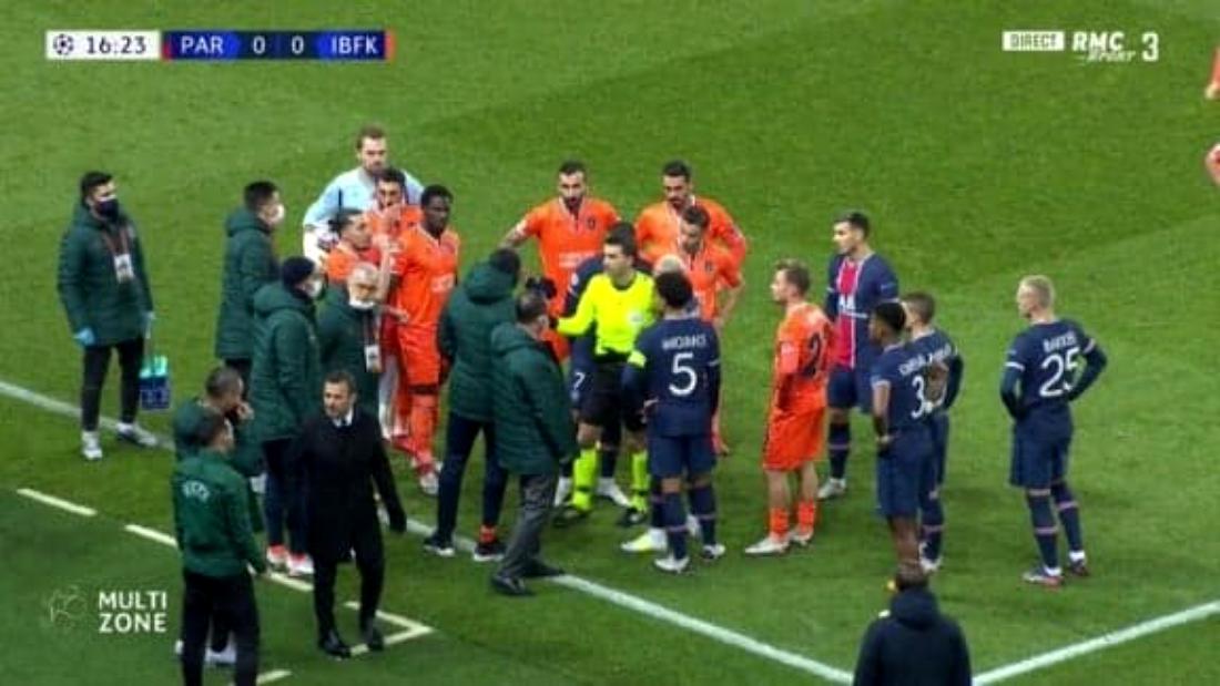 Eliminarea tehnicianului s-a petrecut în minutul 14, iar partida de fotbal dintre PSG și Istanbul Başakşehir, contând pentru etapa a IV-a a Grupei H din Liga Campionilor, s-a întrerupt după ce ambele echipe au ieșit de pe teren.