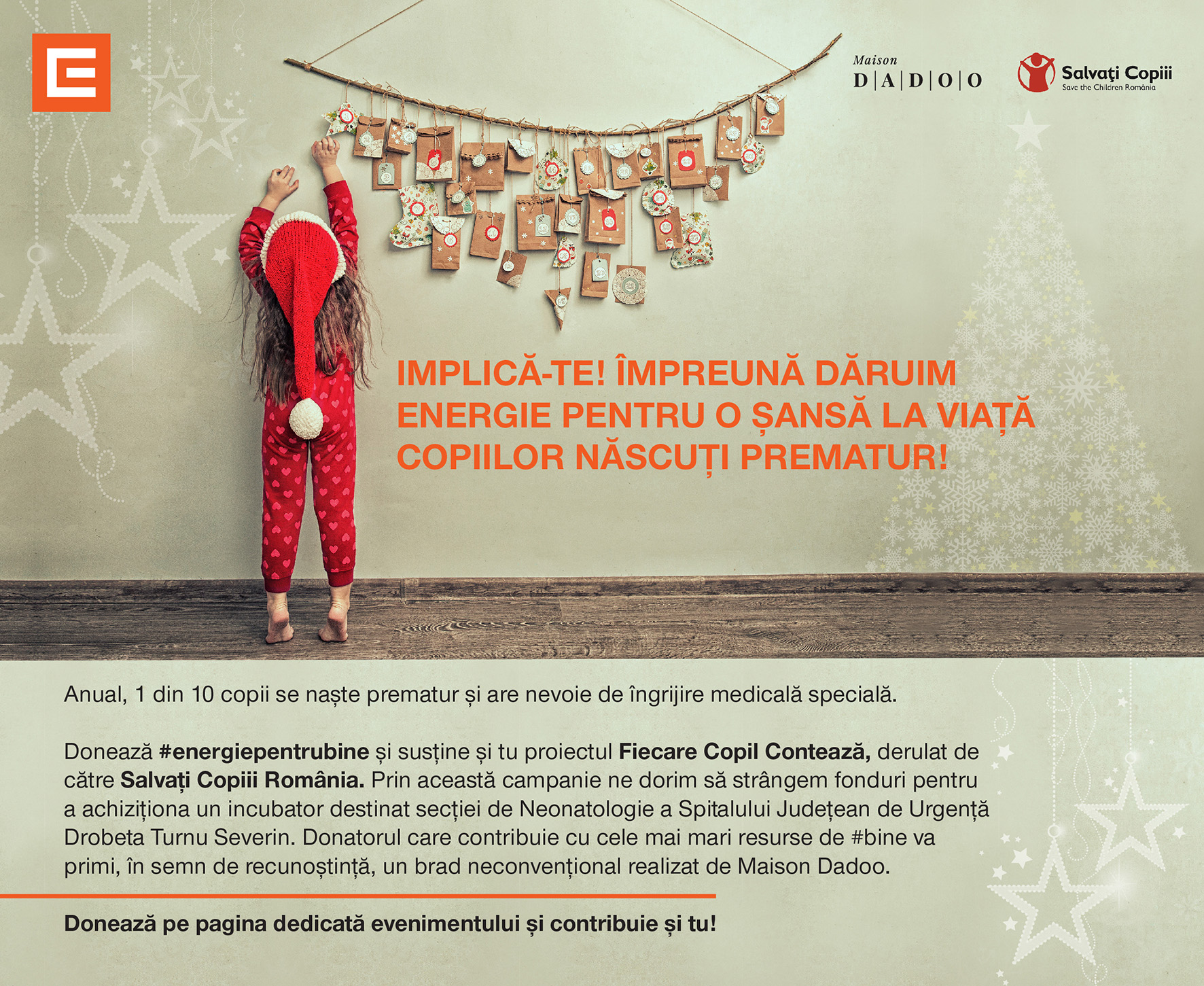 Anual, 1 din 10 copii din România se naște prematur și are nevoie de îngrijire medicală specială. Datele arată că pierdem aproximativ 1.200 de nou-născuți anual. O treime dintre aceste decese pot fi prevenite prin dezvoltarea de programe de suport pentru mame și copii, precum și prin dotarea maternităților și secțiilor de nou-născuți cu echipamente medicale performante. În acest context, CEZ face primul pas în această direcție și sprijină proiectul „Fiecare Copil Contează” – dezvoltat de Salvații Copiii România prin campania care demonstrează că energia vine de la oameni.