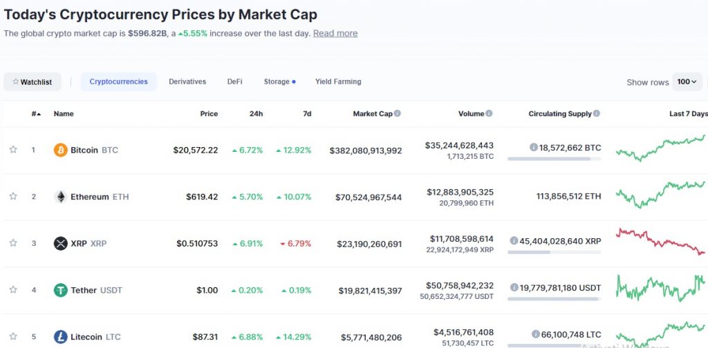 Miercuri după amiaza, în jurul orei 16.00 (ora României), Bitcoin se tranzacționa cu 20.552 dolari pe platformele de profil, conform datelor coinmarketcap.com.