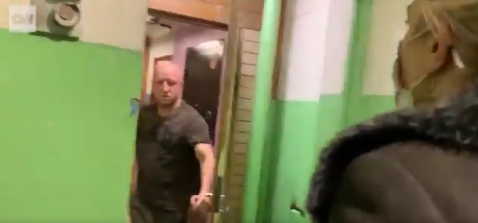 Evident, șocat când a văzut o echipă sosind la el acasă, bărbatul care locuiește într-un complex de apartamente dintr-o suburbie din Moscova, păstrează totuși ușa întredeschisă pentru a asculta ce are de spus reporterul. Dar când ea întreabă dacă echipa lui este responsabilă pentru otrăvirea lui Navalnîi, el încuie rapid ușa.