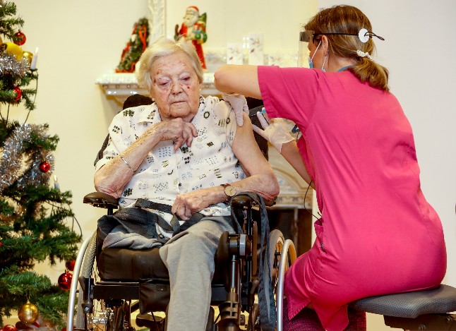 La căminul Krueger din oraşul Halberstadt, Edith Kwoizalla, în vârstă de 101 ani, este prima din Germania căreia i s-a administrat vaccinul produs de compania germană BioNTech în colaborare cu cea americană Pfizer.