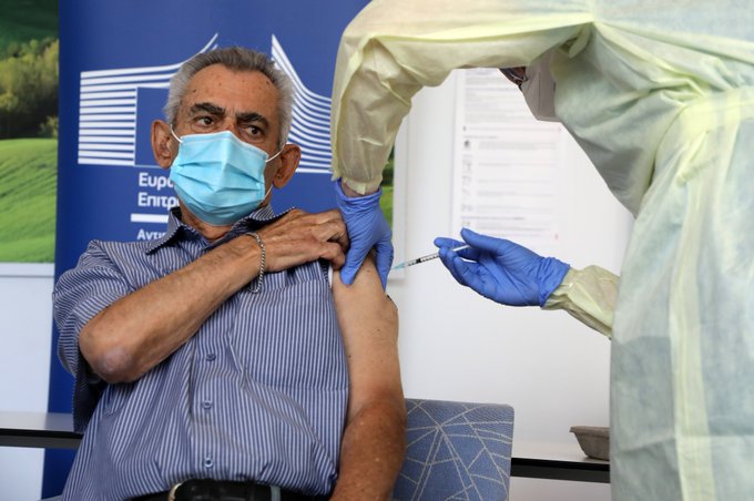 Andreas Raounas, în vârstă de 84 de ani, rezident la o casă de îngrijire, din Nicosia, Panagiota Loizou Fylaktou, în vârstă de 88 de ani și directorul casei, Athos Matsas, au fost primii cetățeni care au fost vaccinați împotriva COVID-19 în districtul Nicosia, după autoritățile au primit ieri primele loturi de vaccin Pfizer-BioNTech.