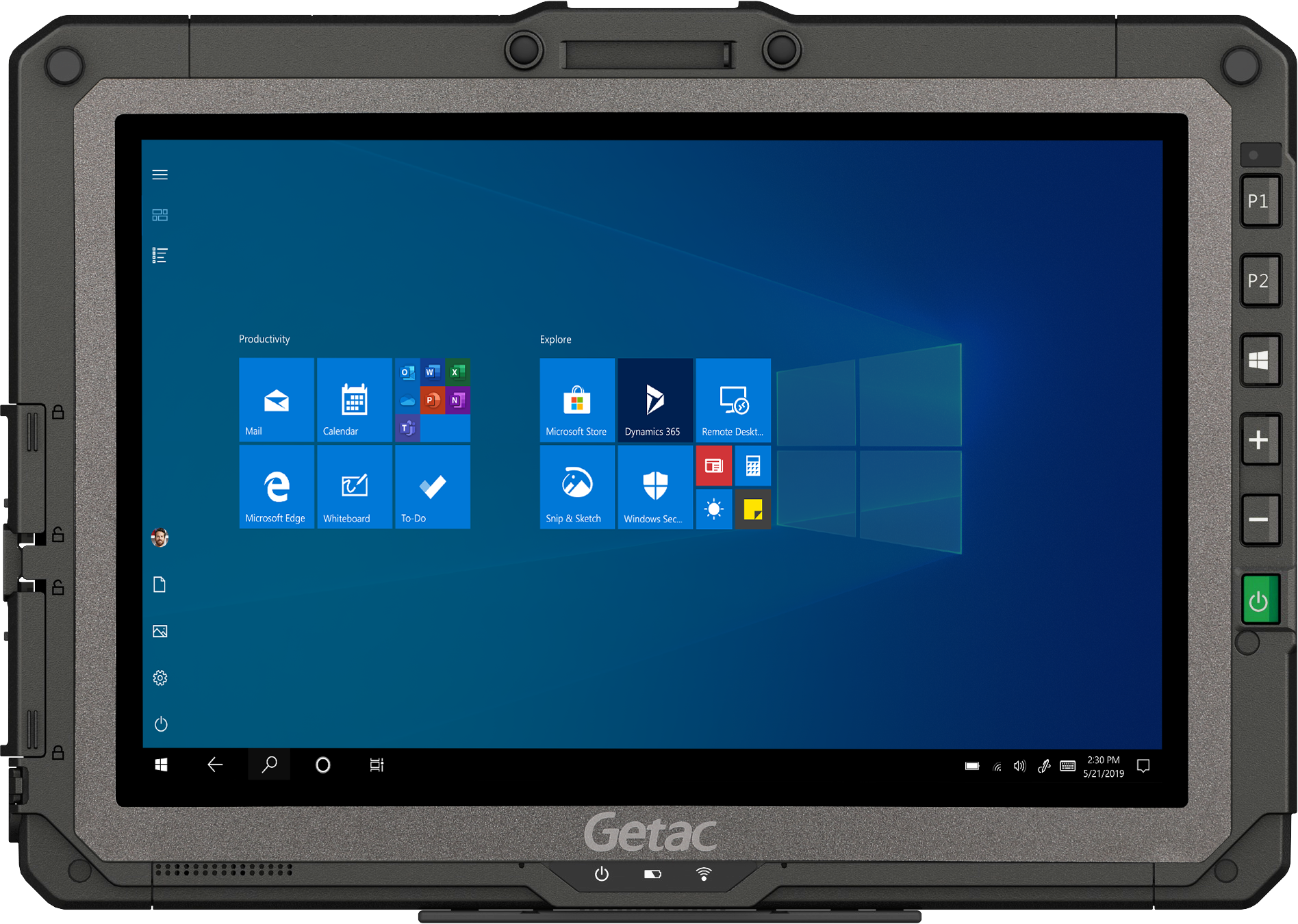Pe lângă rezistența deosebită, Getac UX10 asigură și performanțe de top, care permit profesioniștilor să rezolve sarcini complexe în timp record. Astfel, modelul este echipat cu procesoare Intel Core i5 și Core i7 din generația a 8-a, până la 16GB memorie RAM DDR4 și SSD de până la 1TB, în timp ce sistemul de operare Windows 10 Pro cu care este prevăzut asigură maximum de flexibilitate. Demn de menționat este și ecranul IPS de 10.1” cu rezoluție de 1920×1200 pixeli, care, pe lângă suprafața de lucru generoasă, asigură o luminozitate de până la 1000cd/m2, ceea ce garantează lizibilitatea în orice condiții de iluminat ambiental. Acestuia i se adaugă și 6 butoane fizice pentru funcțiile de rutină pornit/oprit și ajustarea volumului audio, dar și pentru accesul rapid la cameră, activarea meniului Start sau a unei funcții configurabile. Pe lista de conectivitate și dotări se află o cameră web Full HD frontală sau, opțional, una cu suport pentru autentificare prin recunoaștere facială Windows Hello, o cameră dorsală de 8MP cu focalizare automată, 1 conector audio pentru căști și microfon, conector de alimentare, 1 USB 3.1 Gen 2 Tip-A, 1 HDMI și un port pentru soluții de docking. Portofoliul de comunicații este format dintr-o interfață WiFi 802.11ac Intel Wireless-AC 8260, Bluetooth v5.0 și, opțional, interfață Ethernet 10/100/1000 base-T și soluție 4G LTE cu modul GPS integrat. Bateria Li-Ion standard are o capacitate de 4200mAh, în timp ce bateria opțională de capacitate mare asigură 9240mAh.