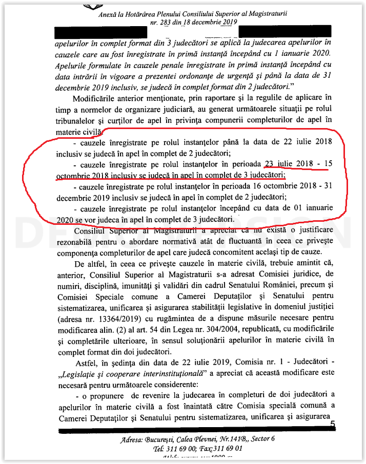 Pentru că argumentul forte al d-lui președinte al CSM Bogdan Mateescu în susținerea încălcării voinței exprimate prin referendum îl constituie faptul că dispozițiile referitoare la judecarea apelurilor în complete de 3 judecători nu ar fi intrat niciodată în vigoare (deci ce mare pagubă că se încalcă voința poporului exprimată prin referendum) redau aici un extras din avizul favorabil al CSM (Hotărârea 283/18.12.2019) la o propunere legislativă, care în prezent se află la Senat, și care viza atunci exact aceeași problemă a amânării intrarii în vigoare a modificării compunerii completelor începand cu 1 ianuarie 2020, precizeaza avocatul Adrian Toni Neacsu.