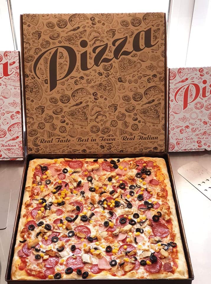 Numai că celebrele – de acum – cutii inscripționate cu Pizza Real Taste, Best in town, Real italian, pare că nu provin din București.