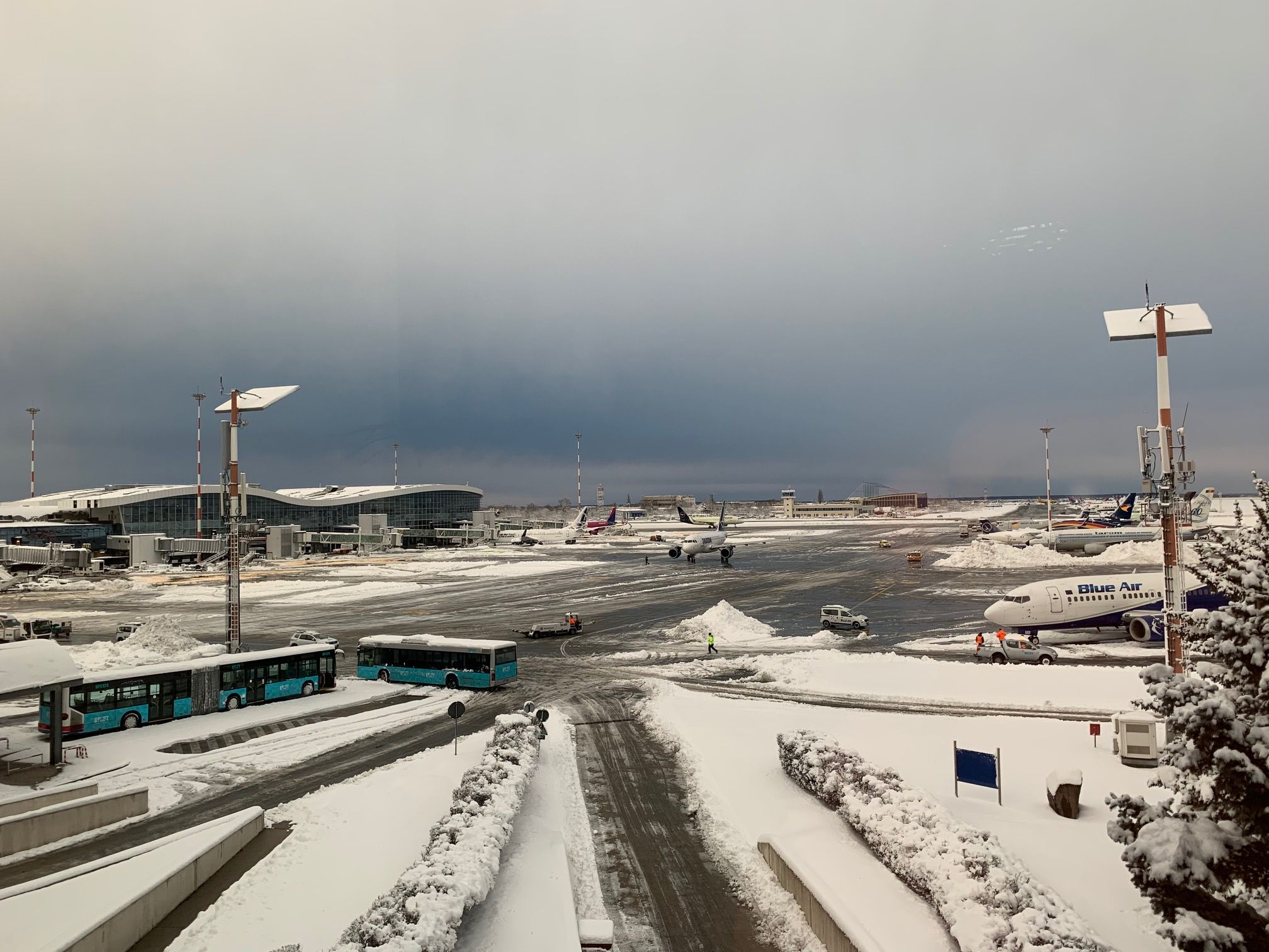 Aeroportul a fost închis sâmbătă şi duminică după ce oraşul a fost afectat de cea mai gravă furtună de zăpadă din ultimele decenii.
