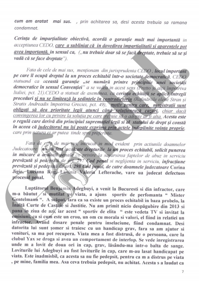 BREAKING NEWS. Trei judecătoare de la Înalta Curte, denunțate la SIIJ pentru favorizarea celebrului luptător Benny Adegbuyi! Instanța e acuzată de ”blat”: ”A mutilat un om pe viață, dar l-au achitat abuziv!” GÂNDUL.RO publică plângerea ÎN EXCLUSIVITATE!