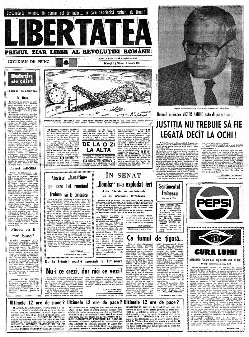 ​Ziarul Libertatea din 15 ianuarie 1991 pag. a 3-a ► Click pe imagine pentru mărire