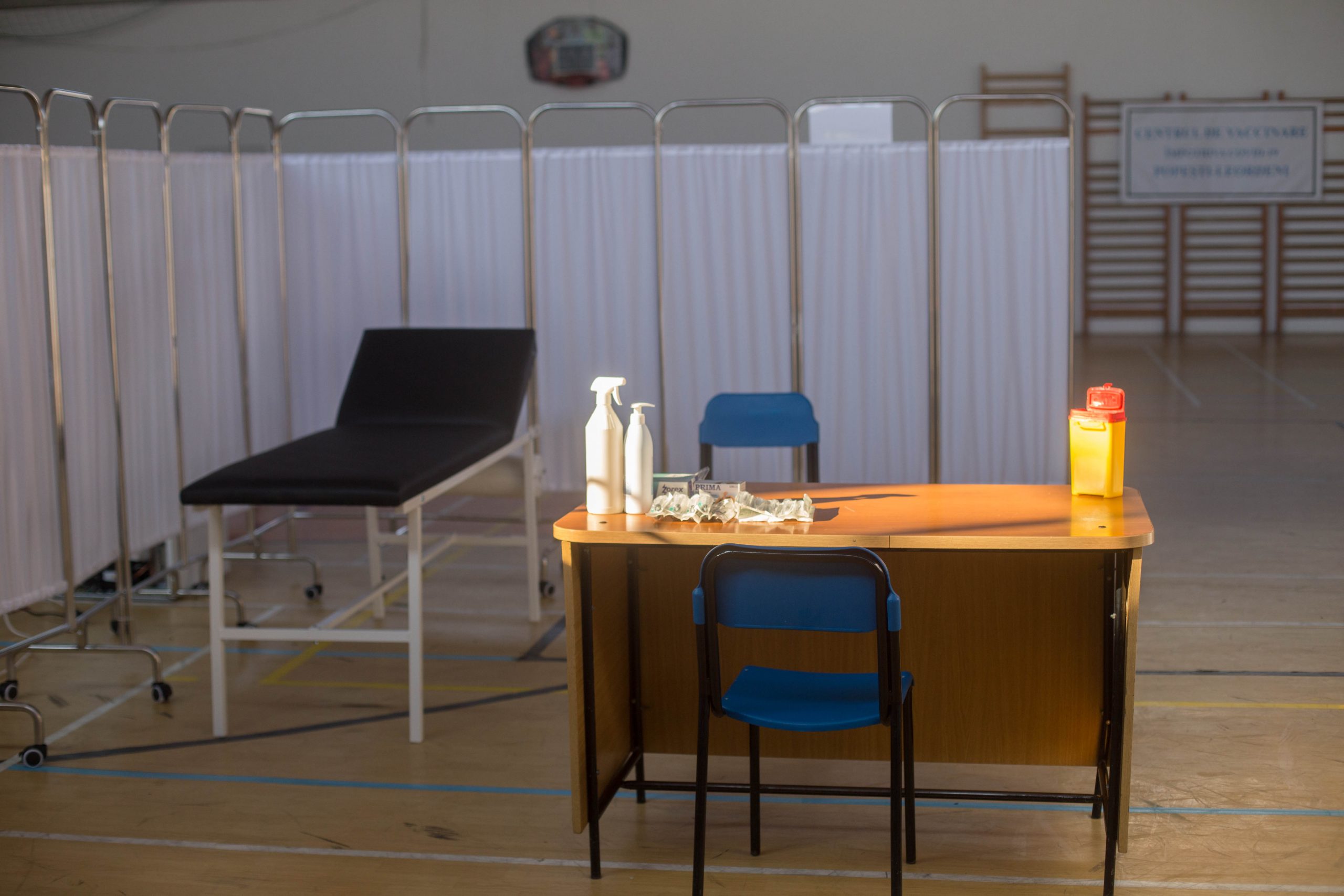 Sălile de sport din licee, transformate în centre de vaccinare anti-COVID: „50% din cadrele didactice refuză imunizarea” (REPORTAJ)