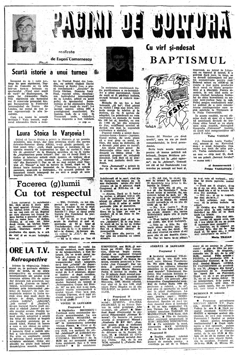 Ziarul Libertatea din 19 ianuarie 1991 pag. a 8-a ► Click pe imagine pentru mărire
