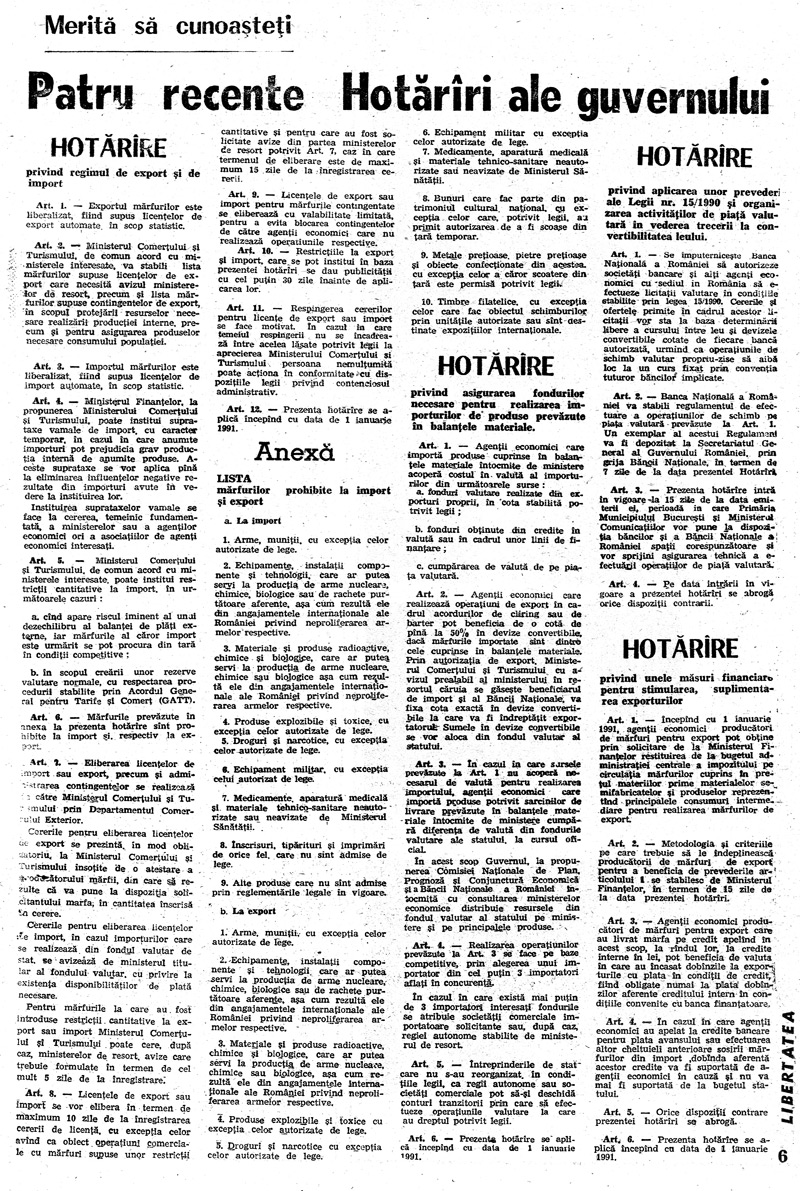 Ziarul Libertatea din 19 ianuarie 1991 pag. a 6-a ► Click pe imagine pentru mărire