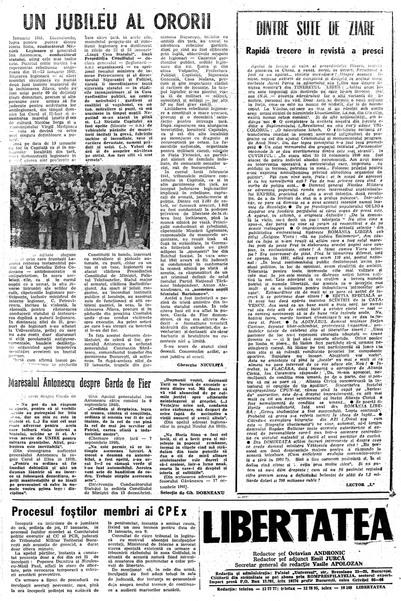 Ziarul Libertatea din 19 ianuarie 1991 pag. 1-a ► Click pe imagine pentru mărire