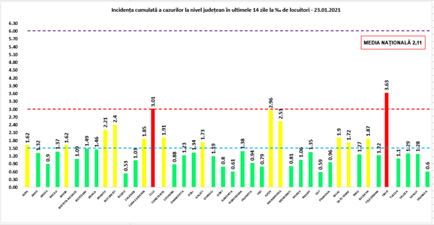 Coeficientul infectărilor cumulate la 14 zile, raportate la 1.000 de locuitori este calculat de către Direcțiile de Sănătate Publică, la nivelul Municipiului București și al județelor.