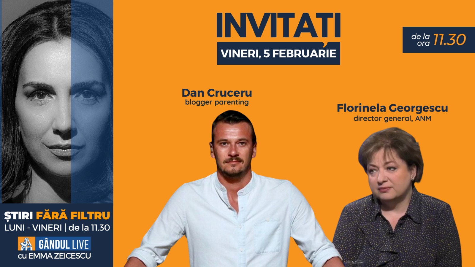 GÂNDUL LIVE. Dan Cruceru, prezentator TV și blogger de parenting, se află printre invitații Emmei Zeicescu la ediția de vineri, 5 februarie 2021, de la ora 11.30