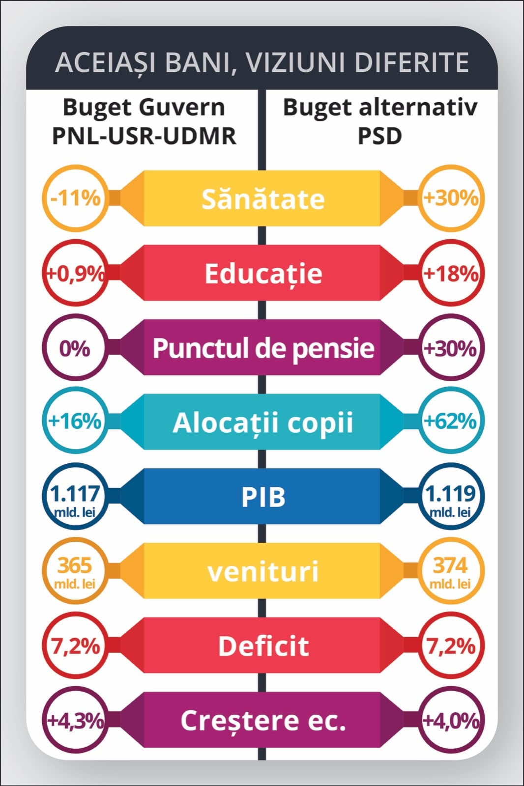 PSD a propus un proiect de buget, în care – cu aceiași bani! – am demonstrat că se pot crește veniturile oamenilor, mări alocațiile copiilor, crește bugetul Sănătății pentru a combate cât mai rapid pandemia, investi în Educația copiilor noștri și se poate sprijini mediul de afaceri! Pe scurt, exact cu aceiași bani, se poate proteja puterea de cumpărare a românilor, sprijini mediul de afaceri românesc și se pot face investiții în mari proiecte de infrastructură, pentru a reporni economia.