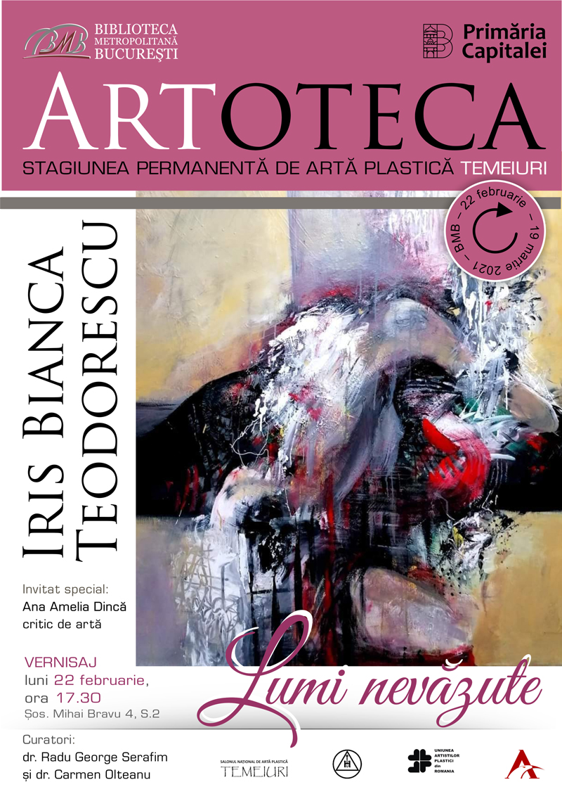 Primăria Capitalei prin Biblioteca Metropolitană București (BMB) anunţă deschiderea expoziției „Lumi nevăzute” a artistei Iris Bianca Teodorescu luni, 22 februarie, începând cu ora 17:30, la Artoteca BMB.