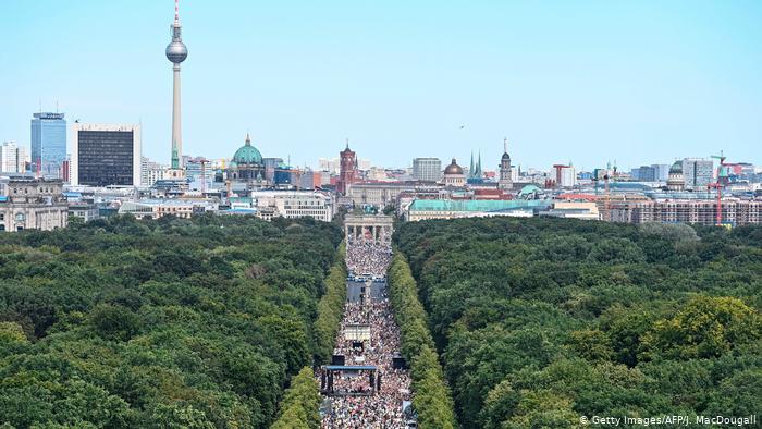 Și la Berlin a avut loc un miting împotriva măsurilor guvernamentale de combatere anti covid. Organizatorii au solicitat participarea a 300 de persoane. Pe unul dintre bannere se putea citi sloganul: „Opriti nebunia coronavirusului”.