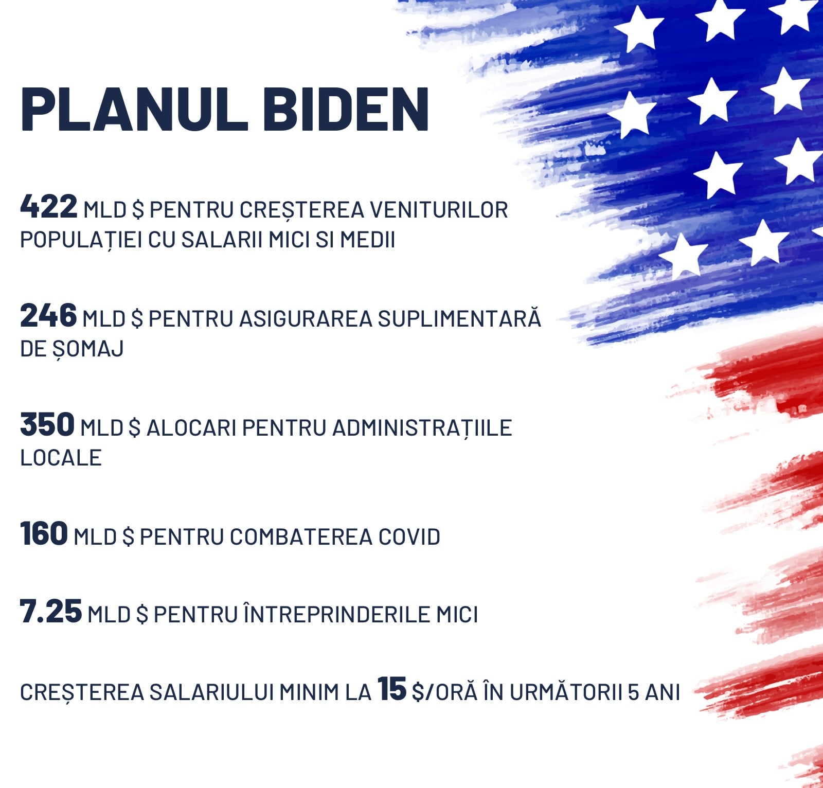 Așa arată planul Biden de scoatere a Americii din criză. Sunt măsuri similare cu propunerile făcute de PSD în programul său de guvernare. Multe dintre aceste măsuri sunt susținute și prin amendamentele la buget depuse de parlamentarii noștri în aceste zile.