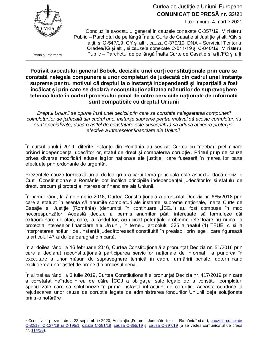 CJUE a decis in favoarea justitiabililor din Romania!/Dar oare justitia „statului de drept” va aplica?