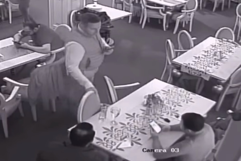 În imagini se poate observa cum Traian Ogâgău se apropie de deputat, în spune ceva iar apoi trântește violent un scaun și pleacă. Scaunul lovește masa și paharele aflate pe ea ca și se sparg.