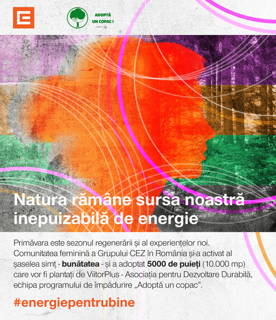 Grupul CEZ întâmpină sezonul regenerării și Ziua Internațională a Femeii cu o nouă inițiativă cu #energiepentrubine. Între 22 – 26 februarie, partenerele de business au fost invitate să adopte stilul care le dă energie și să își activeze simțurile preferate. Cele 5 simțuri au fost completate de un al șaselea – bunătatea. 10 000 mp de pădure vor fi plantați de echipa programului național „Adoptă un copac!”, ca urmare a alegerilor făcute.