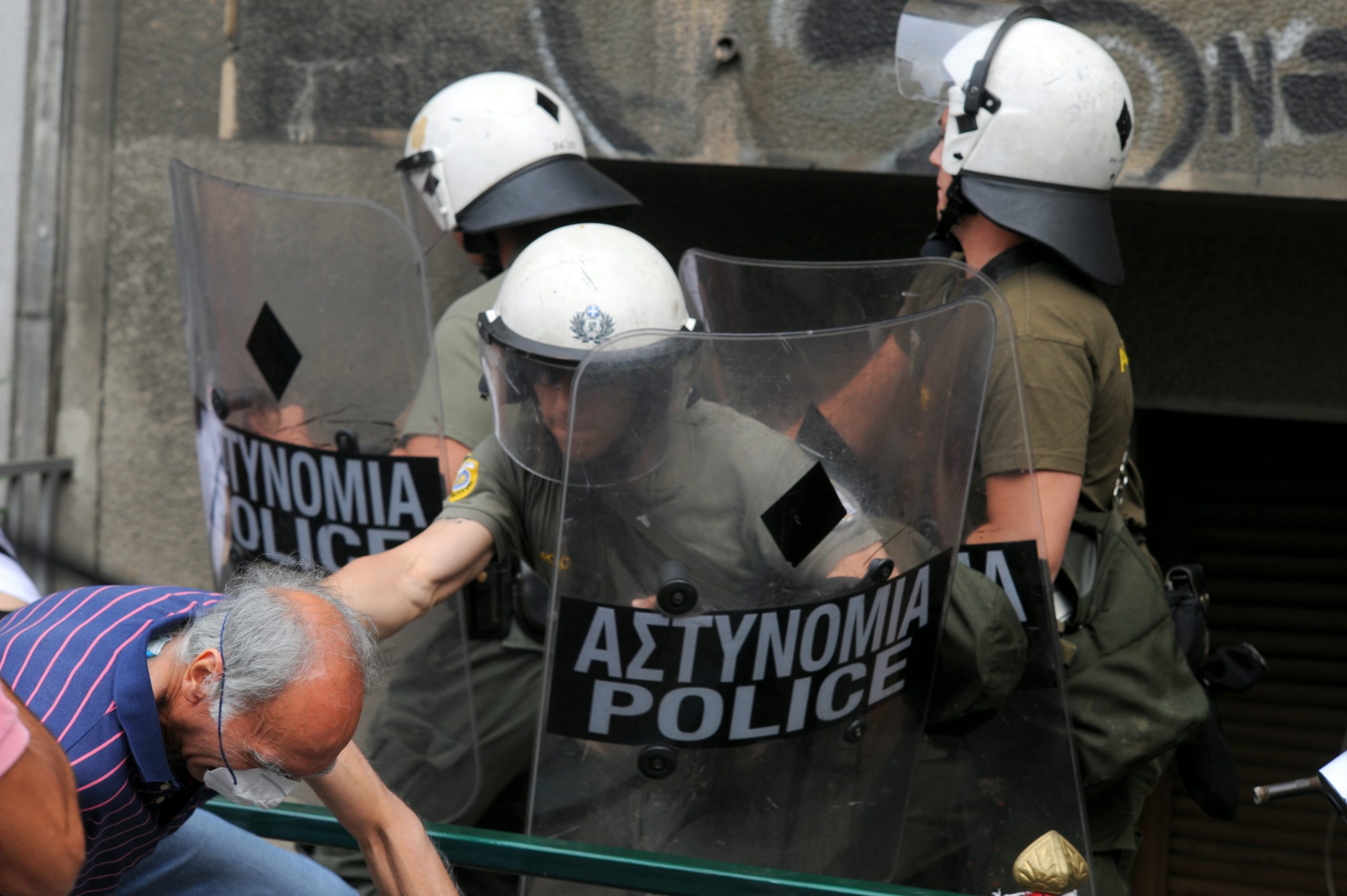 Neputând face față mulțimii furioase, polițiștii au folosit tunuri de apă și gaze lacrimogene împotriva protestatarilor care se adunaseră la Nea Smyrni, periferia sudică a Atenei. Oamenii s-au strâns pe străzi ca reacție faţă de un incident produs cu câteva ceasuri înainte. În videoclipurile postate pe Internet se vede cum un poliţist lovește cu brutalitate un tânăr. La un moment dat, el poate fi auzit strigând „Lăsați-mă, mă doare!”.