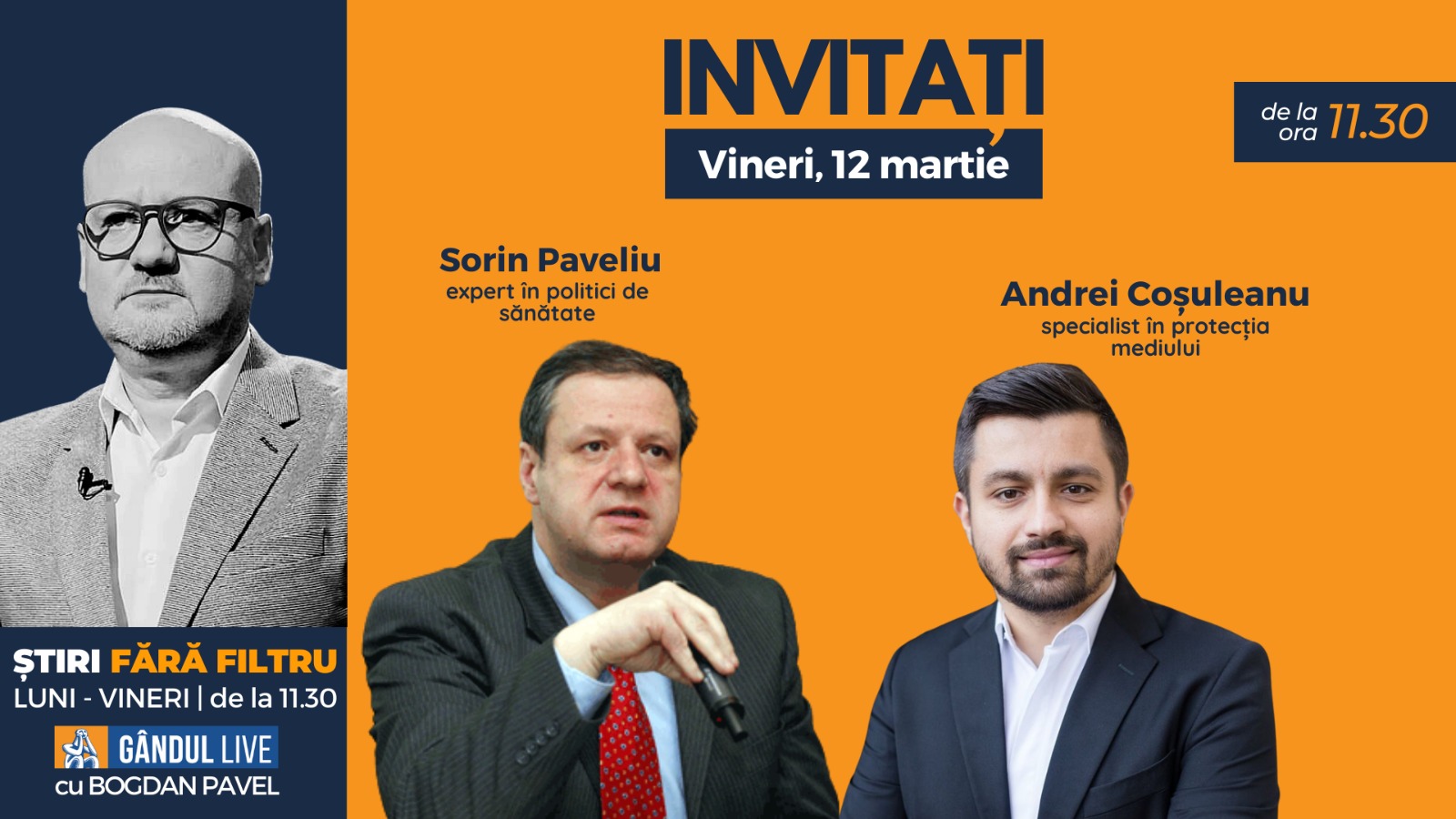 Invitații lui Bogdan Pavel la ediția Gândul Live de vineri, 12 martie 2021